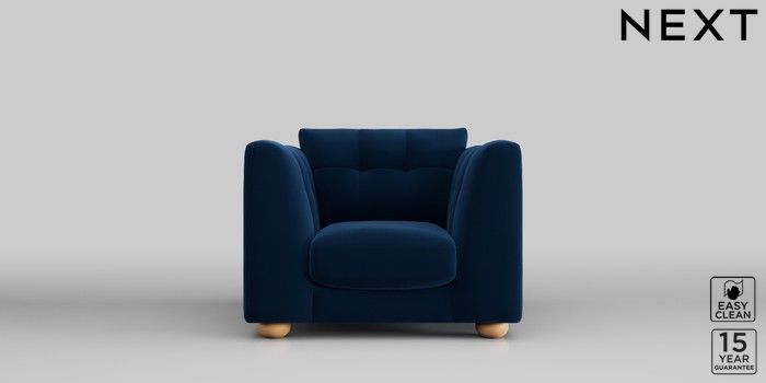7.2.10 Jasmine Armchair Plush Velvet Easy Clean Navy Blue Large Bun - Light | Made Click here to use our website with more accessibility support, for example screen readers