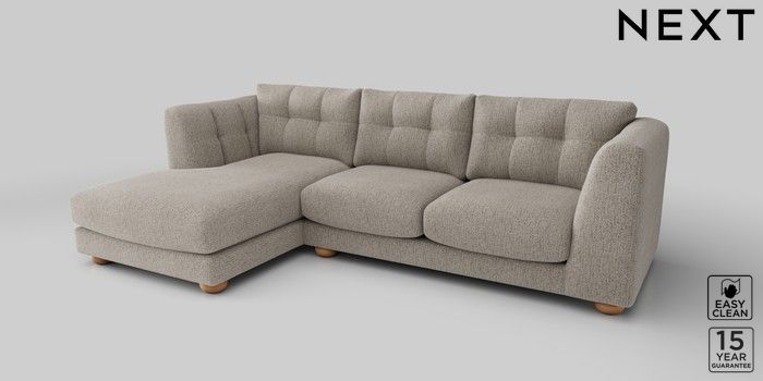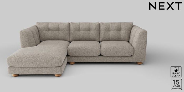 7.2.10 Jasmine Medium Sofa Chaise - Left Hand Chunky Boucle Easy Clean Dove Large Bun - Light | Made Click here to use our website with more accessibility support, for example screen readers