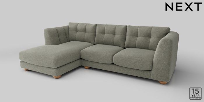 7.2.10 Jasmine Medium Sofa Chaise - Left Hand Chunky Marl Light Olive Green Large Bun - Light | Made Click here to use our website with more accessibility support, for example screen readers