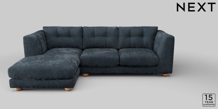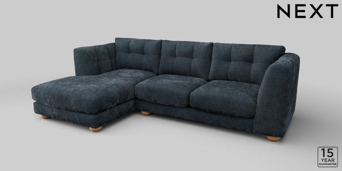 7.2.10 Jasmine Medium Sofa Chaise - Left Hand Distressed Velour Midnight Blue Large Bun - Light | Made Click here to use our website with more accessibility support, for example screen readers