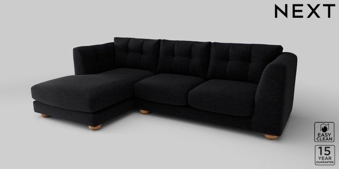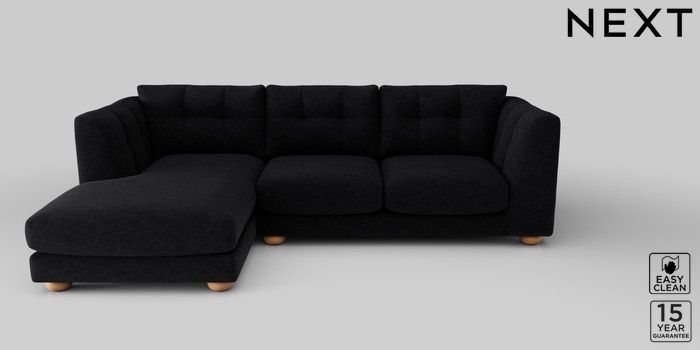 7.2.10 Jasmine Medium Sofa Chaise - Left Hand Fine Chenille Easy Clean Black Large Bun - Light | Made Click here to use our website with more accessibility support, for example screen readers