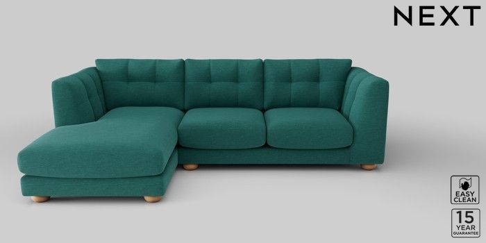 7.2.10 Jasmine Medium Sofa Chaise - Left Hand Fine Chenille Easy Clean Dark Juniper Green Large Bun - Light | Made Click here to use our website with more accessibility support, for example screen readers