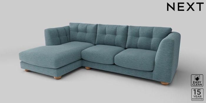 7.2.10 Jasmine Medium Sofa Chaise - Left Hand Fine Chenille Easy Clean Mid Blue Large Bun - Light | Made Click here to use our website with more accessibility support, for example screen readers