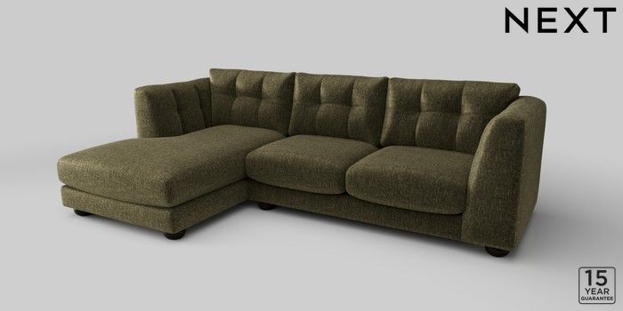 7.2.10 Jasmine Medium Sofa Chaise - Left Hand Plush Chenille Moss Green Large Bun - Dark | Made Click here to use our website with more accessibility support, for example screen readers
