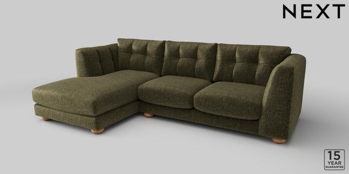 7.2.10 Jasmine Medium Sofa Chaise - Left Hand Plush Chenille Moss Green Large Bun - Light | Made Click here to use our website with more accessibility support, for example screen readers