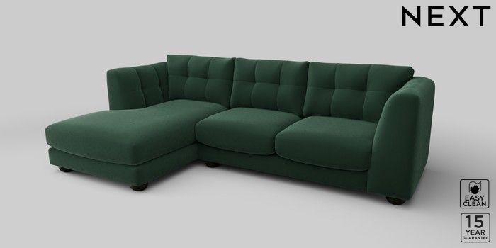 7.2.10 Jasmine Medium Sofa Chaise - Left Hand Plush Velvet Easy Clean Bottle Green Large Bun - Dark | Made Click here to use our website with more accessibility support, for example screen readers