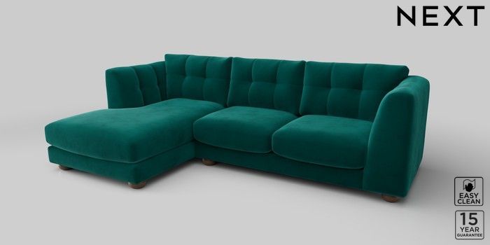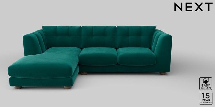 7.2.10 Jasmine Medium Sofa Chaise - Left Hand Plush Velvet Easy Clean Juniper Green Large Bun - Mid | Made Click here to use our website with more accessibility support, for example screen readers