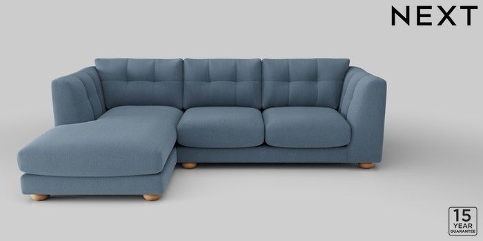 7.2.10 Jasmine Medium Sofa Chaise - Left Hand Relaxed Linen Look Mid Blue Large Bun - Light | Made Click here to use our website with more accessibility support, for example screen readers