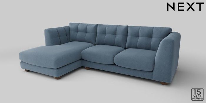 7.2.10 Jasmine Medium Sofa Chaise - Left Hand Relaxed Linen Look Mid Blue Large Bun - Mid | Made Click here to use our website with more accessibility support, for example screen readers