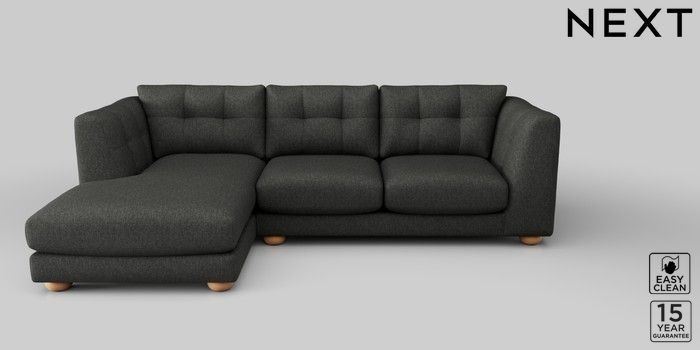 7.2.10 Jasmine Medium Sofa Chaise - Left Hand Tweedy Blend Easy Clean Charcoal Grey Large Bun - Light | Made Click here to use our website with more accessibility support, for example screen readers