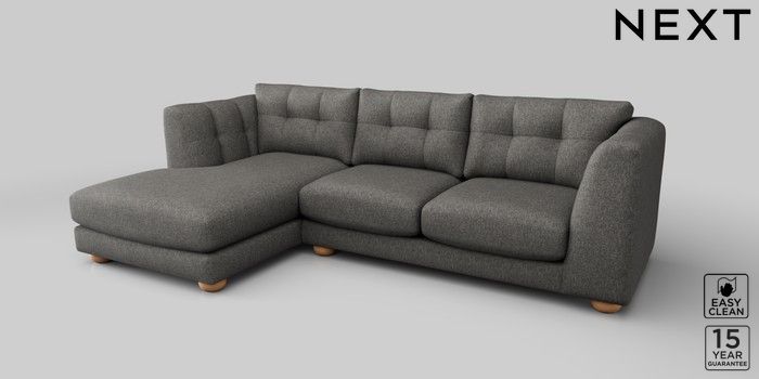 7.2.10 Jasmine Medium Sofa Chaise - Left Hand Tweedy Blend Easy Clean Dark Grey Large Bun - Light | Made Click here to use our website with more accessibility support, for example screen readers