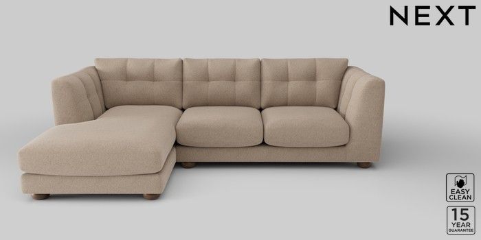 7.2.10 Jasmine Medium Sofa Chaise - Left Hand Tweedy Blend Easy Clean Light Dove Natural Large Bun - Mid | Made Click here to use our website with more accessibility support, for example screen readers