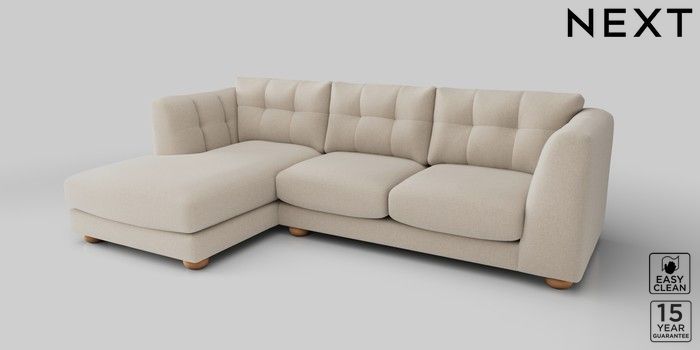 7.2.10 Jasmine Medium Sofa Chaise - Left Hand Tweedy Blend Easy Clean Oyster Large Bun - Light | Made Click here to use our website with more accessibility support, for example screen readers
