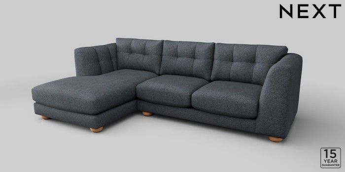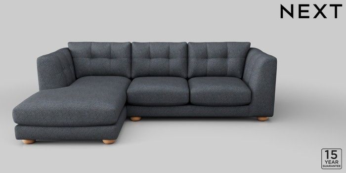 7.2.10 Jasmine Medium Sofa Chaise - Left Hand Tweedy Chenille Navy Blue Large Bun - Light | Made Click here to use our website with more accessibility support, for example screen readers