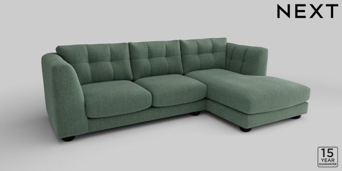 7.2.10 Jasmine Medium Sofa Chaise - Right Hand Chunky Texture Mid Forest Green Large Bun - Dark | Made Click here to use our website with more accessibility support, for example screen readers
