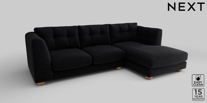 7.2.10 Jasmine Medium Sofa Chaise - Right Hand Fine Chenille Easy Clean Black Large Bun - Light | Made Click here to use our website with more accessibility support, for example screen readers