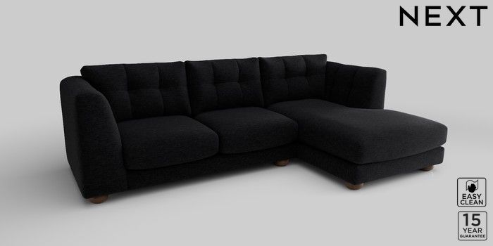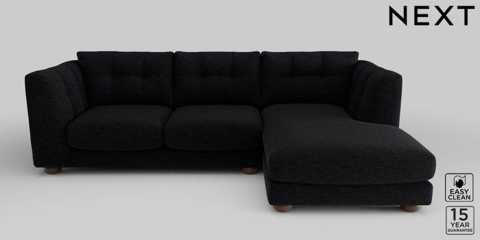 7.2.10 Jasmine Medium Sofa Chaise - Right Hand Fine Chenille Easy Clean Black Large Bun - Mid | Made Click here to use our website with more accessibility support, for example screen readers