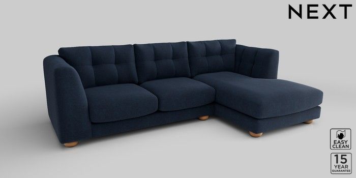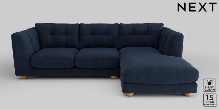 7.2.10 Jasmine Medium Sofa Chaise - Right Hand Fine Chenille Easy Clean Dark Navy Blue Large Bun - Light | Made Click here to use our website with more accessibility support, for example screen readers