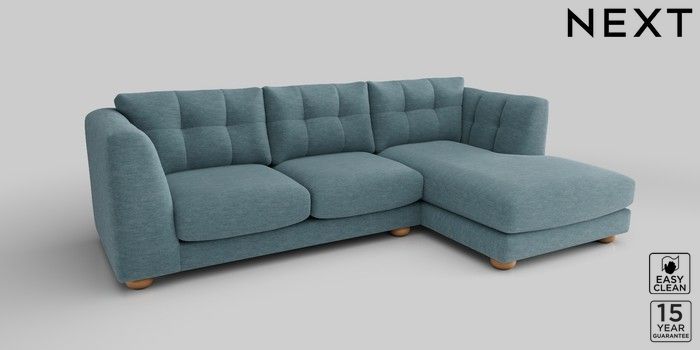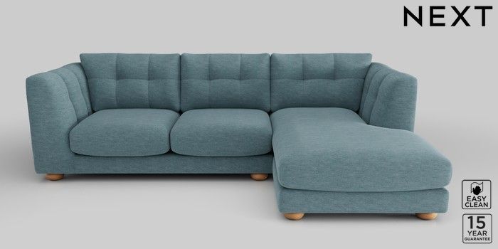 7.2.10 Jasmine Medium Sofa Chaise - Right Hand Fine Chenille Easy Clean Mid Blue Large Bun - Light | Made Click here to use our website with more accessibility support, for example screen readers