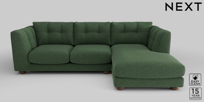 7.2.10 Jasmine Medium Sofa Chaise - Right Hand Fine Chenille Easy Clean Mid Khaki Green Large Bun - Mid | Made Click here to use our website with more accessibility support, for example screen readers