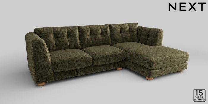 7.2.10 Jasmine Medium Sofa Chaise - Right Hand Plush Chenille Moss Green Large Bun - Light | Made Click here to use our website with more accessibility support, for example screen readers