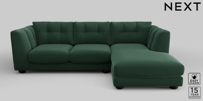 7.2.10 Jasmine Medium Sofa Chaise - Right Hand Plush Velvet Easy Clean Bottle Green Large Bun - Dark | Made Click here to use our website with more accessibility support, for example screen readers