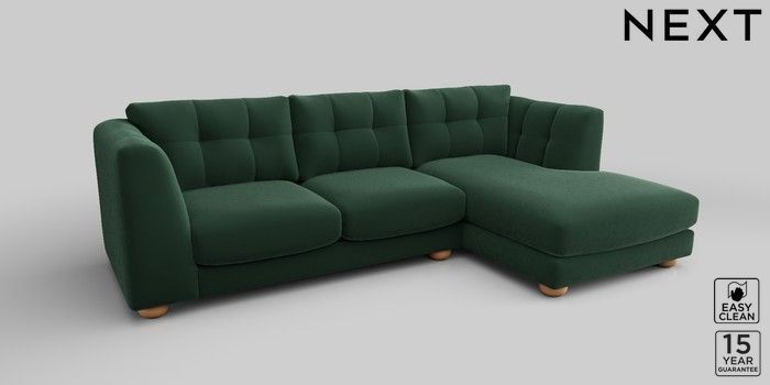 7.2.10 Jasmine Medium Sofa Chaise - Right Hand Plush Velvet Easy Clean Bottle Green Large Bun - Light | Made Click here to use our website with more accessibility support, for example screen readers