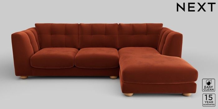 7.2.10 Jasmine Medium Sofa Chaise - Right Hand Plush Velvet Easy Clean Ginger Orange Large Bun - Light | Made Click here to use our website with more accessibility support, for example screen readers