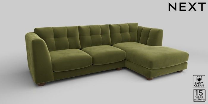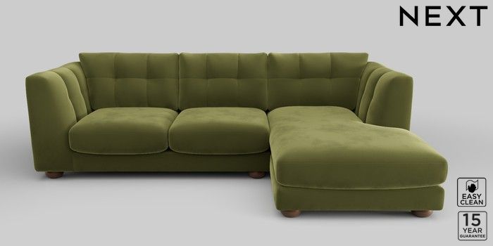7.2.10 Jasmine Medium Sofa Chaise - Right Hand Plush Velvet Easy Clean Mid Olive Green Large Bun - Mid | Made Click here to use our website with more accessibility support, for example screen readers