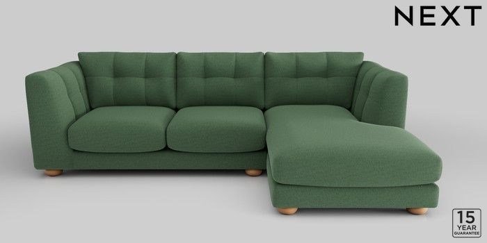 7.2.10 Jasmine Medium Sofa Chaise - Right Hand Relaxed Linen Look Dark Green Large Bun - Light | Made Click here to use our website with more accessibility support, for example screen readers