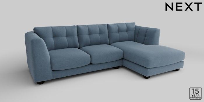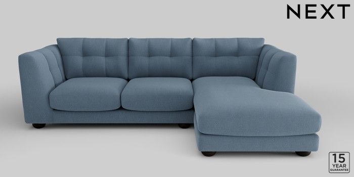 7.2.10 Jasmine Medium Sofa Chaise - Right Hand Relaxed Linen Look Mid Blue Large Bun - Dark | Made Click here to use our website with more accessibility support, for example screen readers