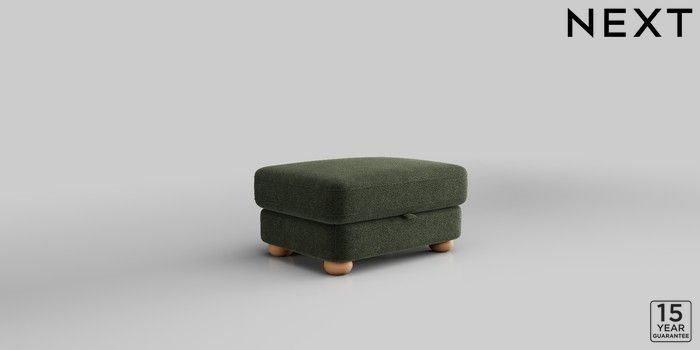 7.2.10 Jasmine Storage Footstool Boucle Chenille Dark Moss Green Large Bun - Light | Made Click here to use our website with more accessibility support, for example screen readers
