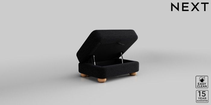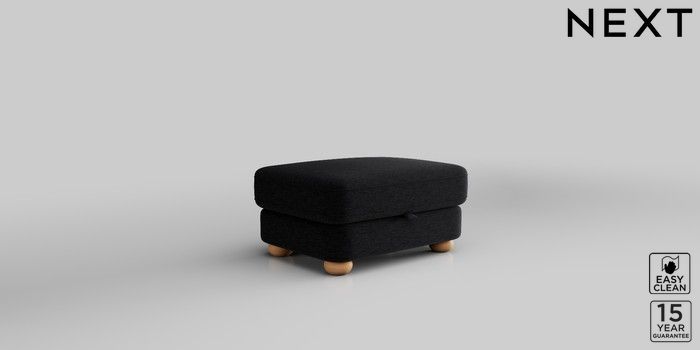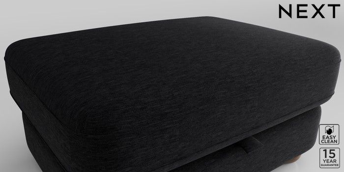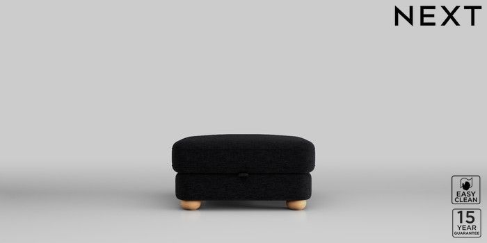 7.2.10 Jasmine Storage Footstool Fine Chenille Easy Clean Black Large Bun - Light | Made Click here to use our website with more accessibility support, for example screen readers