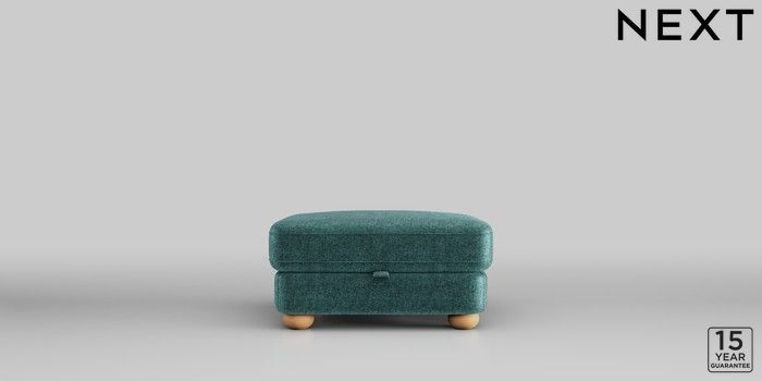 7.2.10 Jasmine Storage Footstool Plush Chenille Dark Teal Green Large Bun - Light | Made Click here to use our website with more accessibility support, for example screen readers