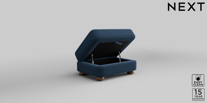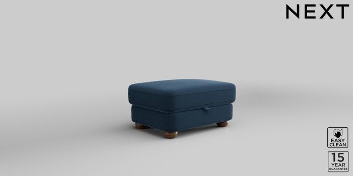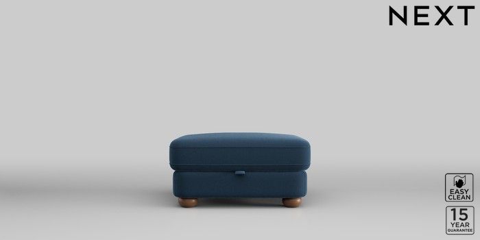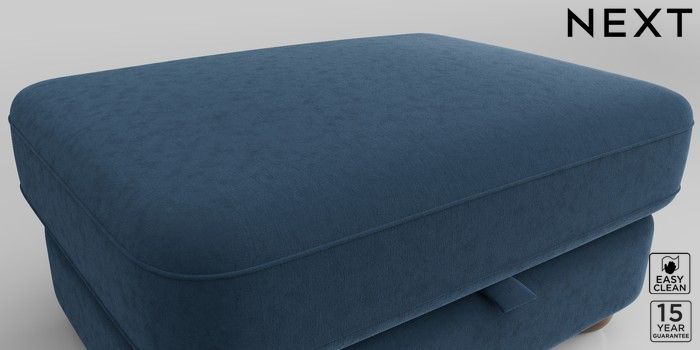 7.2.10 Jasmine Storage Footstool Plush Velvet Easy Clean Airforce Blue Large Bun - Mid | Made Click here to use our website with more accessibility support, for example screen readers