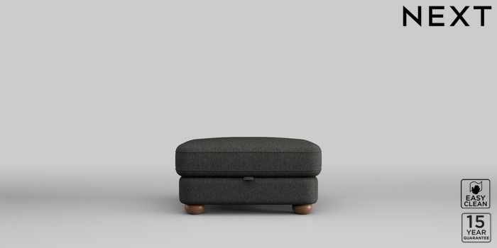 7.2.10 Jasmine Storage Footstool Tweedy Blend Easy Clean Charcoal Grey Large Bun - Mid | Made Click here to use our website with more accessibility support, for example screen readers