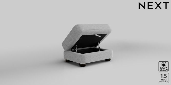 7.2.10 Jasmine Storage Footstool Tweedy Blend Easy Clean Light Silver Grey Large Bun - Dark | Made Click here to use our website with more accessibility support, for example screen readers