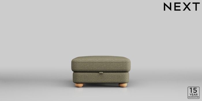 7.2.10 Jasmine Storage Footstool Tweedy Chenille Mid Moss Green Large Bun - Light | Made Click here to use our website with more accessibility support, for example screen readers