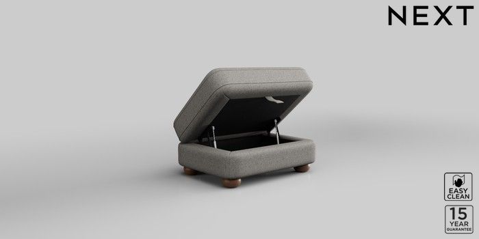 7.2.10 Jasmine Storage Footstool Woven Chenille Easy Clean Light Grey Large Bun - Mid | Made Click here to use our website with more accessibility support, for example screen readers