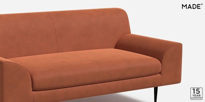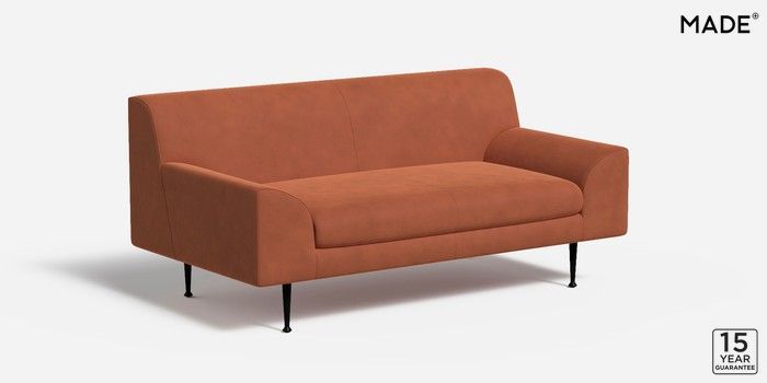 6.12.1 Judd by Made 2 Seater Sofa Matt Velvet Easy Clean Burnt Orange Tapered - Black Metal | Made Click here to use our website with more accessibility support, for example screen readers