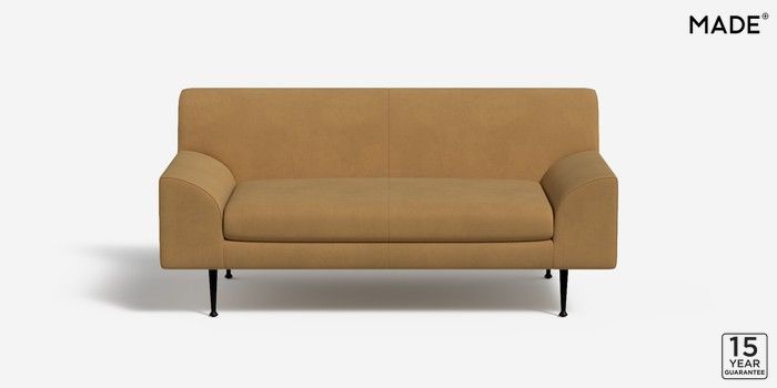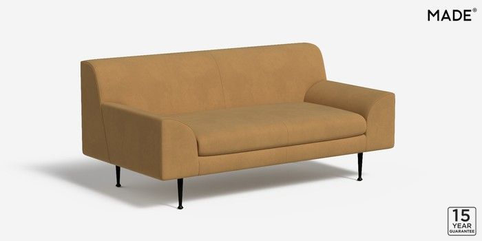 6.12.1 Judd by Made 2 Seater Sofa Matt Velvet Easy Clean Caramel Natural Tapered - Black Metal | Made Click here to use our website with more accessibility support, for example screen readers