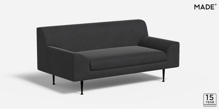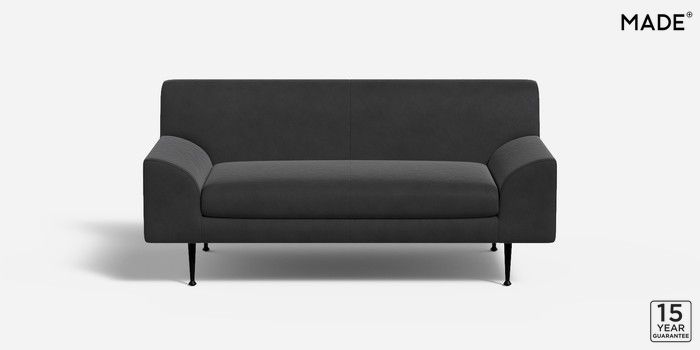 6.12.1 Judd by Made 2 Seater Sofa Matt Velvet Easy Clean Charcoal Grey Tapered - Black Metal | Made Click here to use our website with more accessibility support, for example screen readers