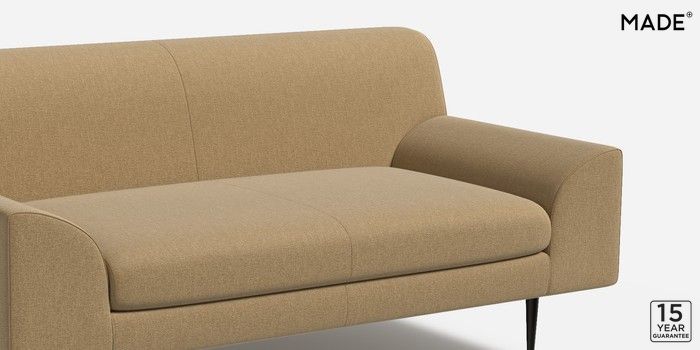 6.12.1 Judd by Made 2 Seater Sofa Textured Slub Weave Caramel Natural Tapered - Black Metal | Made Click here to use our website with more accessibility support, for example screen readers