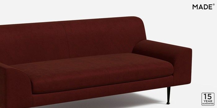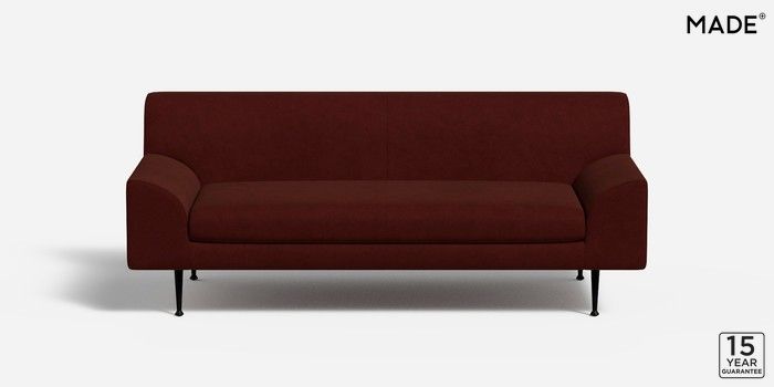 6.12.1 Judd by Made 3 Seater Small Sofa Matt Velvet Easy Clean Rust Red Tapered - Black Metal | Made Click here to use our website with more accessibility support, for example screen readers