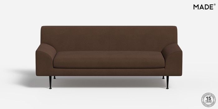 6.12.1 Judd by Made 3 Seater Small Sofa Matt Velvet Easy Clean Soft Brown Tapered - Black Metal | Made Click here to use our website with more accessibility support, for example screen readers