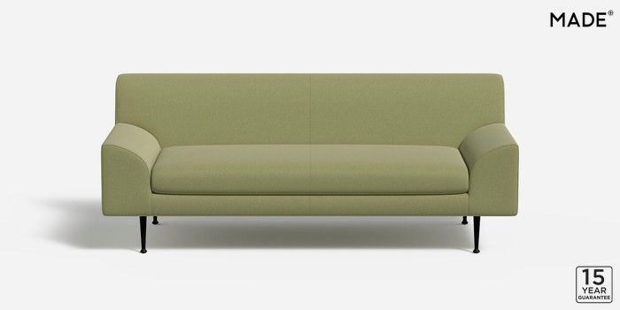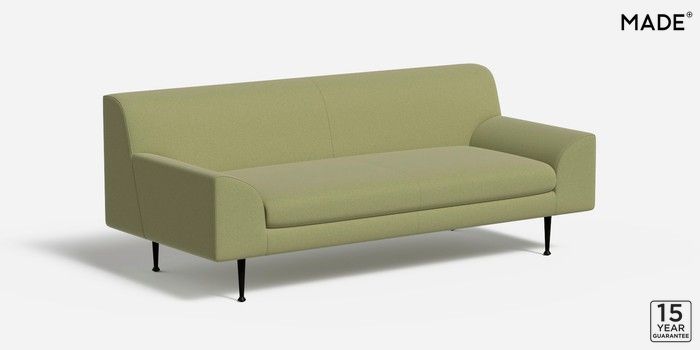 6.12.1 Judd by Made 3 Seater Small Sofa Soft Chenille Easy Clean Green Tea Tapered - Black Metal | Made Click here to use our website with more accessibility support, for example screen readers