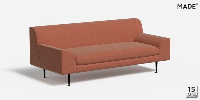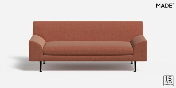 6.12.1 Judd by Made 3 Seater Small Sofa Soft Chenille Easy Clean Paprika Orange Tapered - Black Metal | Made Click here to use our website with more accessibility support, for example screen readers