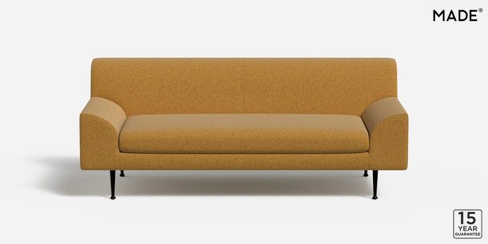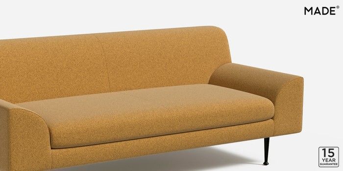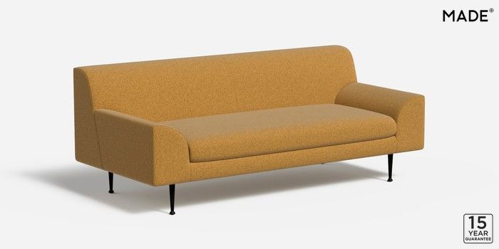 6.12.1 Judd by Made 3 Seater Small Sofa Soft Touch Boucle Ochre Yellow Tapered - Black Metal | Made Click here to use our website with more accessibility support, for example screen readers