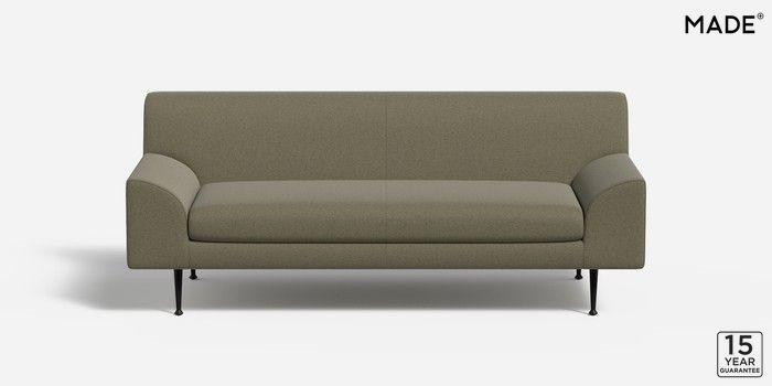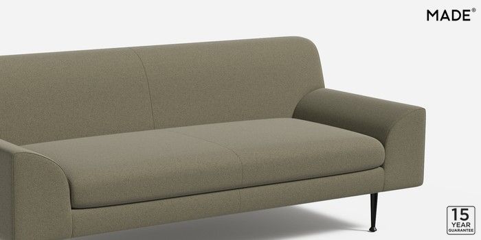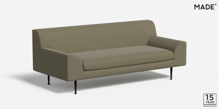 6.12.1 Judd by Made 3 Seater Small Sofa Textured Slub Weave Soft Olive Green Tapered - Black Metal | Made Click here to use our website with more accessibility support, for example screen readers