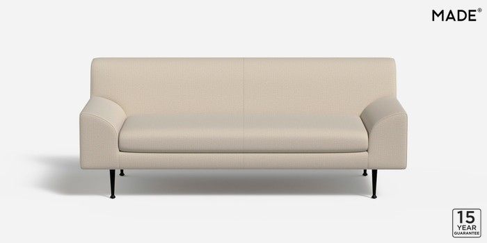 6.12.1 Judd by Made 3 Seater Small Sofa Textured Woven Natural Tapered - Black Metal | Made Click here to use our website with more accessibility support, for example screen readers
